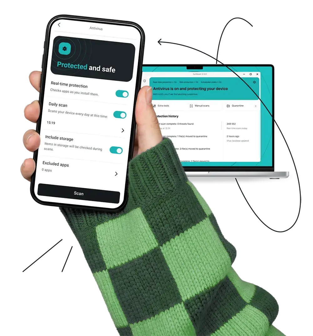 Other antivirus programs offer limited defense. Our multi-device protection lets you run Antivirus on up to five devices with a single Surfshark account on your favorite operating systems: Windows, Android, or macOS.