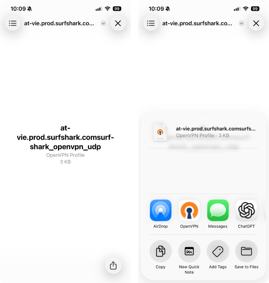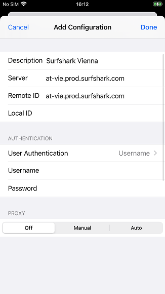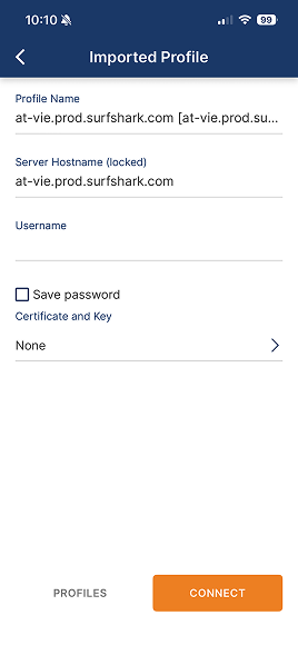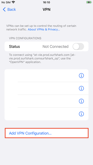 To manually set up a Surfshark OpenVPN connection on your iOS device, follow these steps: