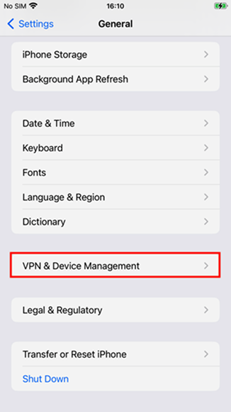 11. Go back to the Settings app, go to General, and tap on the VPN & Device Management tab.