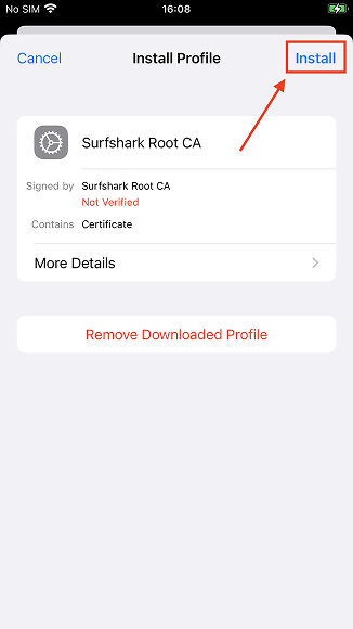 6. When the download finishes, you’ll get a Profile Downloaded notification. Select Close.