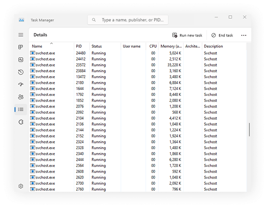 - Monitor the Task Manager: regularly check for svchost.exe processes that are behaving oddly, such as those using excessive CPU power or memory. Right-click on the process and select Go to Details to see what services it’s hosting. If anything looks unusual or unfamiliar, take action;