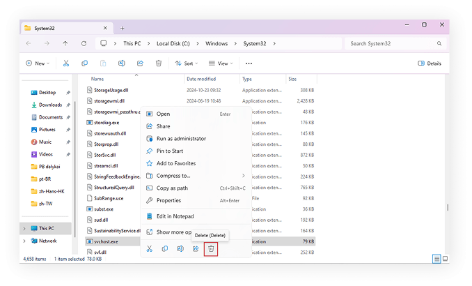 If the antivirus doesn’t automatically remove the file, go to its location found in step 2. Delete svchost.exe manually, but only after ensuring the process is no longer active.