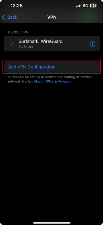 - Appuyez sur VPN puis sur Ajouter une configuration VPN…