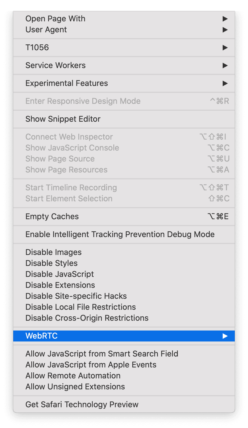 How to disable WebRTC on Safari?
